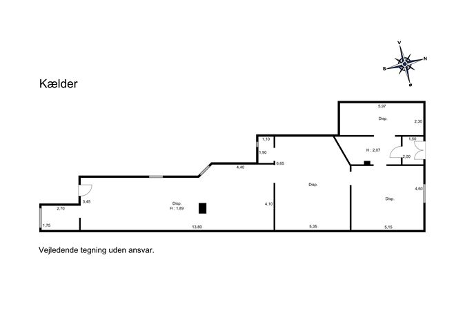Lokalerne har et tinglystareal på 160 m² som af nuværende lejer primært anvender lokalerne til opmagasinering. Erhvervsejerlejligheden indeholder flere kælderlokaler af varierende størrelser og nuværende lejer har opsat et campingtoilet i lejemålet. Indgangen til lokalet er via udvendig kældertrappe fra forsiden af ejendommen. Lokalerne har en loftshøjde på mellem 1,89 m og 2,07 m fra gulv til loft.