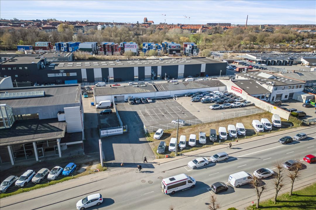 Ejendommen rummer 771 m² koldt lager, som i dag anvendes som dækcenter, og hertil kommer en 2.755 m² stor parkerings-og udearealgrund.