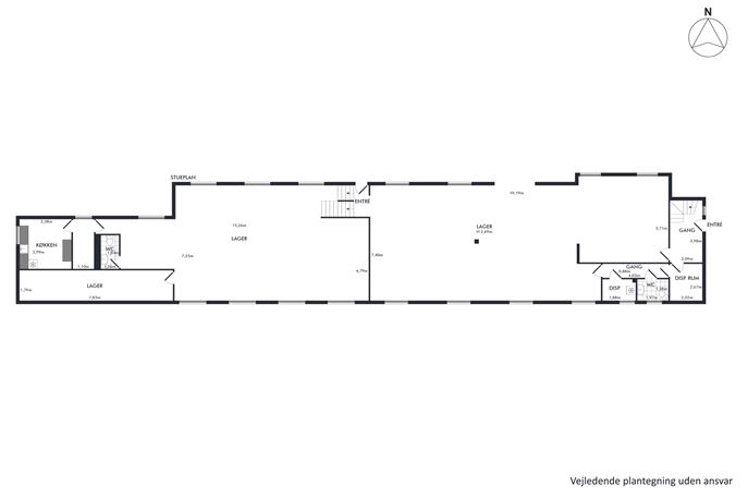 Ejendommen er i 2 plan. Stueplan er indrettet til skilteværksted med port, 1. sal er udlejet, samt bagenden af bygningen, i alt 3 kontrakter.