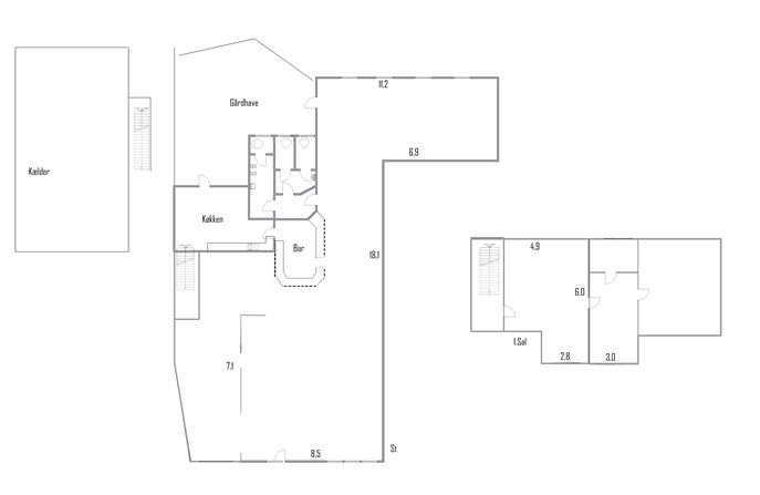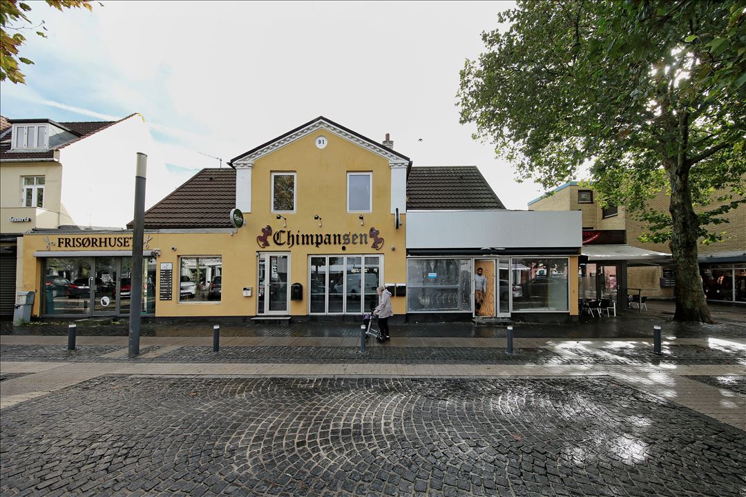 Som ny ejer af ejendommen er alle muligheder åbne, du kan drive din egen butik, bar restaurant mv. eller du kan købe ejendommen som investeringsejendom og leje den ud.Bygningen er indrettet med 3 lejemål. Lokalerne har været anvendte til cafe/bar med kontor og personalerum på 1. sal, gårdhave med mulighed for udeservering samt en frisørsalon, disse 2 lejemål er mulige at lægge sammen til et lejemål. De er begge er ledige til købers brug.