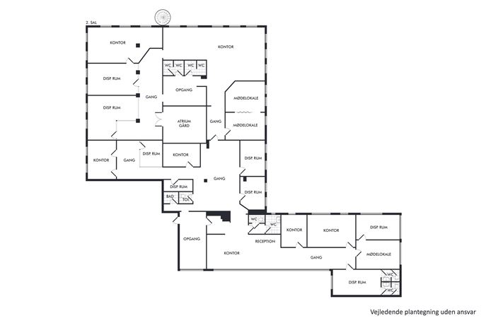 Lejemålet består p.t. af en god kombination af enkelt-storrums-og flermandskontorer suppleret med loungeområder, møderum, kantine m.v.