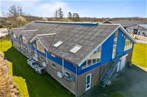 Domicilejendom i to etager med sort grundareal på 3.750 m² og et samlet etageareal på 950 fordelt med 475 m² i stuen og 475 m² på 1. sal.Ydervægge er opførte med beton sandwichelementer og tagkonstruktionen er med stålspær, gennemgående glasrytterlys samt gavlkviste i begge facader og tagbeklædning er bølgeeternitplader. Udvendige døre, vinduer og glasindgangsparti er udført med trærammer/karme og termoruder.