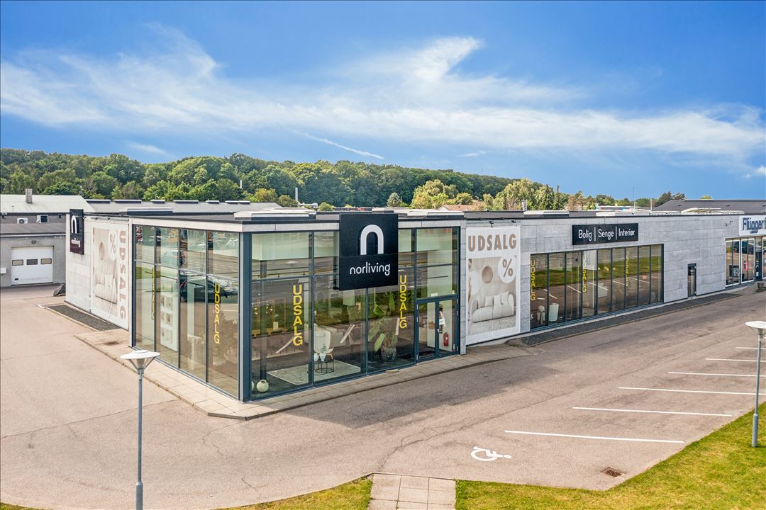 Ejendommen er ideel til salg af møbler, detailhandel af pladskrævende varegrupper, showroom eller kombineret butiksløsning –med en unik placering og synlighed, der er svær at matche i Hillerød
