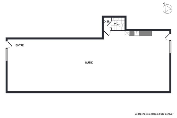 Lejemålet har tidligere været anvendt som foreningslokale, men er velegnet til en bred vifte af formål – f.eks. klinik, rådgivningskontor, showroom eller specialbutik.