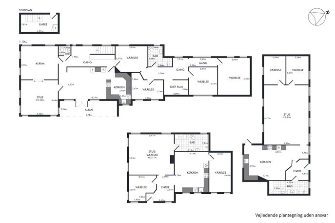 Ejendommen består af tre selvstændige og rummelige boligenheder med et samlet boligareal på 414 m². Boligerne er fordelt på én 5-værelses og to 3-værelses lejligheder, alle med gennemtænkte planløsninger og et indbydende udtryk. Enhederne fremstår i god stand med lyse rum og velfungerende indretninger, der appellerer til både familier, par og enlige.
