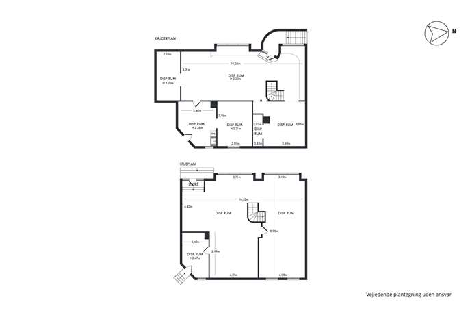 Kælderen (117 m²): Kælderen er tilgængelig fra gadeniveau, samt via trappe fra stueetagen, hvilket giver ekstra fleksibilitet og muligheder for lejeren. Ligesom stueetagen har kælderen store vinduespartier for god belysning og synlighed.