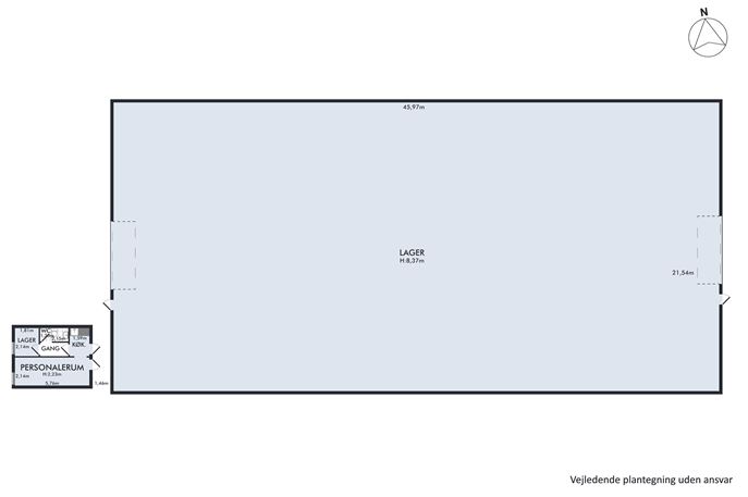 På Herthadalvej 11A i Nørre Alslev udbydes en solid og funktionel erhvervsejendom, der egner sig perfekt til lager, logistik, produktion eller entreprenørvirksomhed. Ejendommen består af en stor uisoleret hal på 1004 m² med en imponerende frihøjde på 8,37 meter i kip, hvilket giver optimale muligheder for opbevaring i højden, truckkørsel eller installation af reoler og produktionsudstyr.Bygningen er opført i stålrammekonstruktion med stålbeklædning og betongulv, og har store portåbninger i begge ender, således er der nem adgang for lastbiler og maskiner. Til ejendommen hører desuden et mindre personalelokale med kontor, køkken, toilet og depot.