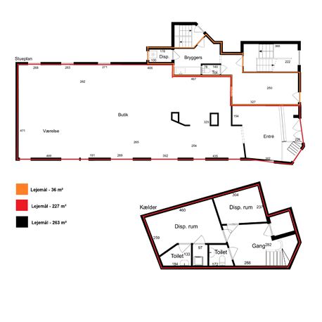 • 263 m² (Samlet lejemål, består af 213 i stueplan og 50 m² kælder)