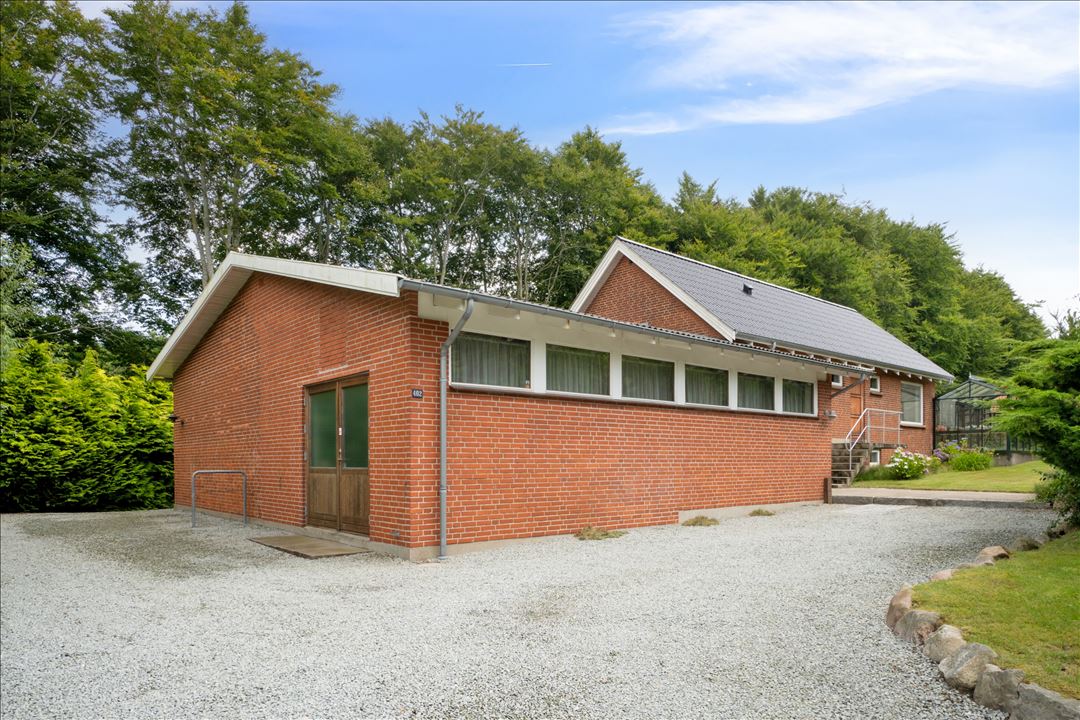 Her udbydes en sjælden mulighed for at overtage en solid rødstensejendom, der kombinerer bolig og erhverv i en funktionel og velholdt ramme. Med en attraktiv beliggenhed direkte ud til Brovejen er ejendommen perfekt til den selvstændigt erhvervsdrivende, der ønsker synlighed og fleksible anvendelsesmuligheder.Boligdelen er pæn og velindrettet og består af en overetage og en underetage foruden et isoleret loftrum. Beboelsen er løbende sat i stand og har bl.a. fået nyt tag i 2023, ligesom gulvene er afhøvlet, og væggene er malet. Der venter derfor et lyst og indflytningsklart hjem med en god rumfordeling samt adgang til en dejlig, ugeneret have med drivhus.