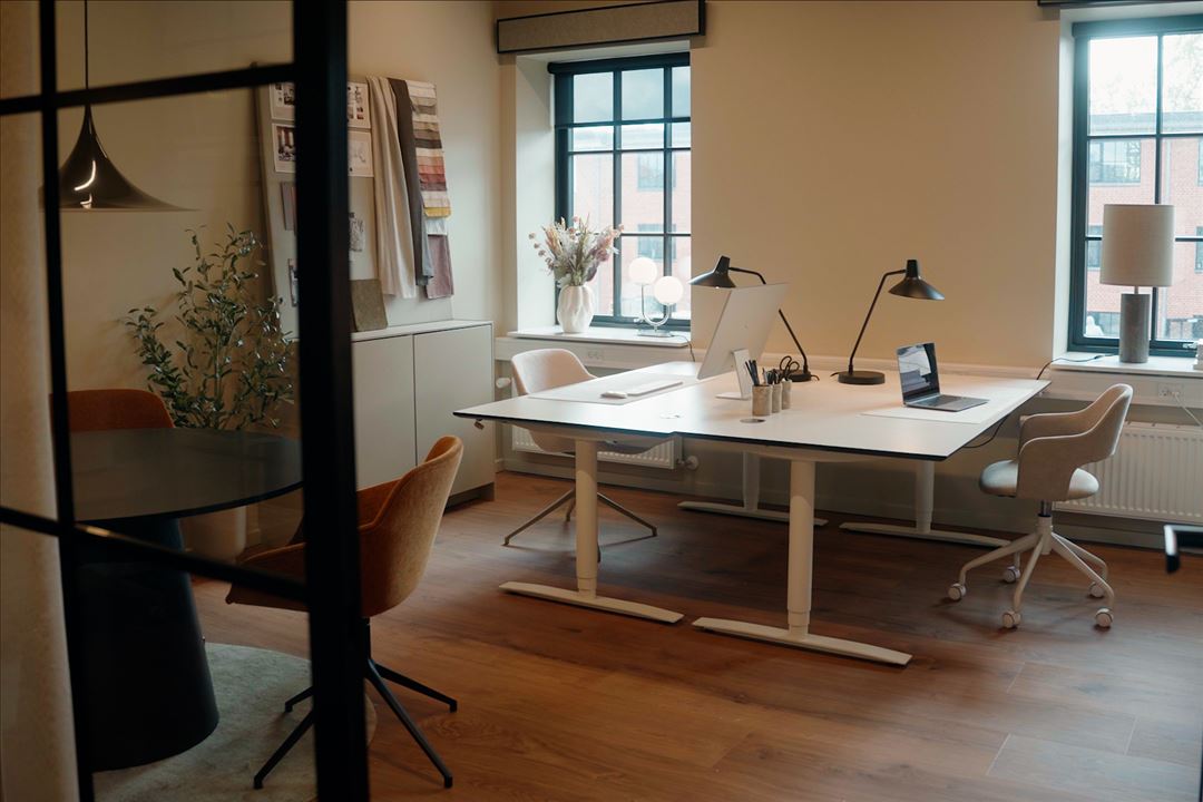 Kontorindretning: Der leveres hæve-sænke-borde, ergonomisk kontorstol med mulighed for at sætte dit eget personlige præg.
