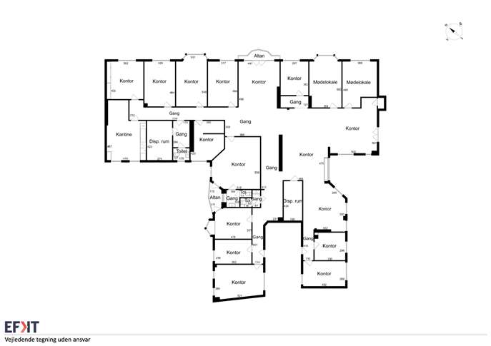 På Jernbanegade 4, 1. sal udbydes et særdeles rummeligt kontorlejemål på 540 m² med en markant og præsentabel fremtoning. Lokalet er kendetegnet ved højt til loftet, flotte trægulve samt klassiske detaljer som stukkatur, loftsrosetter og en tidligere bankboks, der med fordel kan anvendes til arkiv.Lejemålet har gennem en lang årrække huset advokatkontor, hvilket afspejles i planløsningen med gode kontor- og møderum. Indretningen giver dog fleksible muligheder for både kontor, rådgivningsvirksomhed eller andre erhverv med behov for repræsentative rammer.