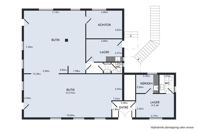 Lejemålet fremstår som et samlet lejemål med butikslokaler, kontor, lager, toiletter, personalerum m.m.