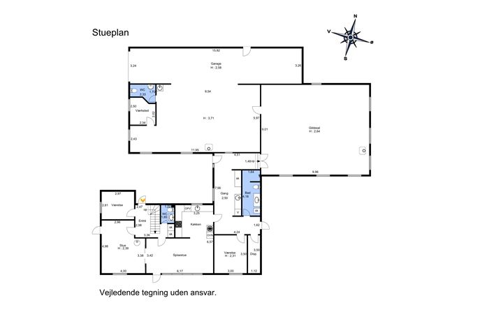Selve villaen er indflytningsklar og byder på et boligareal på 197 m² fordelt på 1½ plan – rigeligt med plads til den store familie eller dem, der ønsker ekstra rum til gæster og hobbyer. Planløsningen er regulær og funktionel med bl.a. to badeværelser, gæstetoilet, fire værelser, walk-in-closet, et ekstra disponibelt rum, samt køkken i åben forbindelse med spisestue og en hyggelig dagligstue med udgang til haven. Hertil en rummelig entré/fordelingsgang, hvor gæster kan bydes velkommen med god plads.