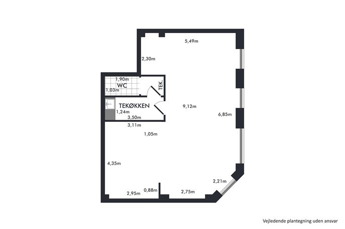 I baglokalet findes et praktisk tekøkken samt et moderne toilet, og der medfølger til kælderlokale med ekstra opbevaringsmuligheder. Samlet set fremstår lejemålet som et særdeles velindrettet, funktionelt og indflytningsklart butikslokale, hvor enhver lejer kan skabe en attraktiv ramme for sin virksomhed.