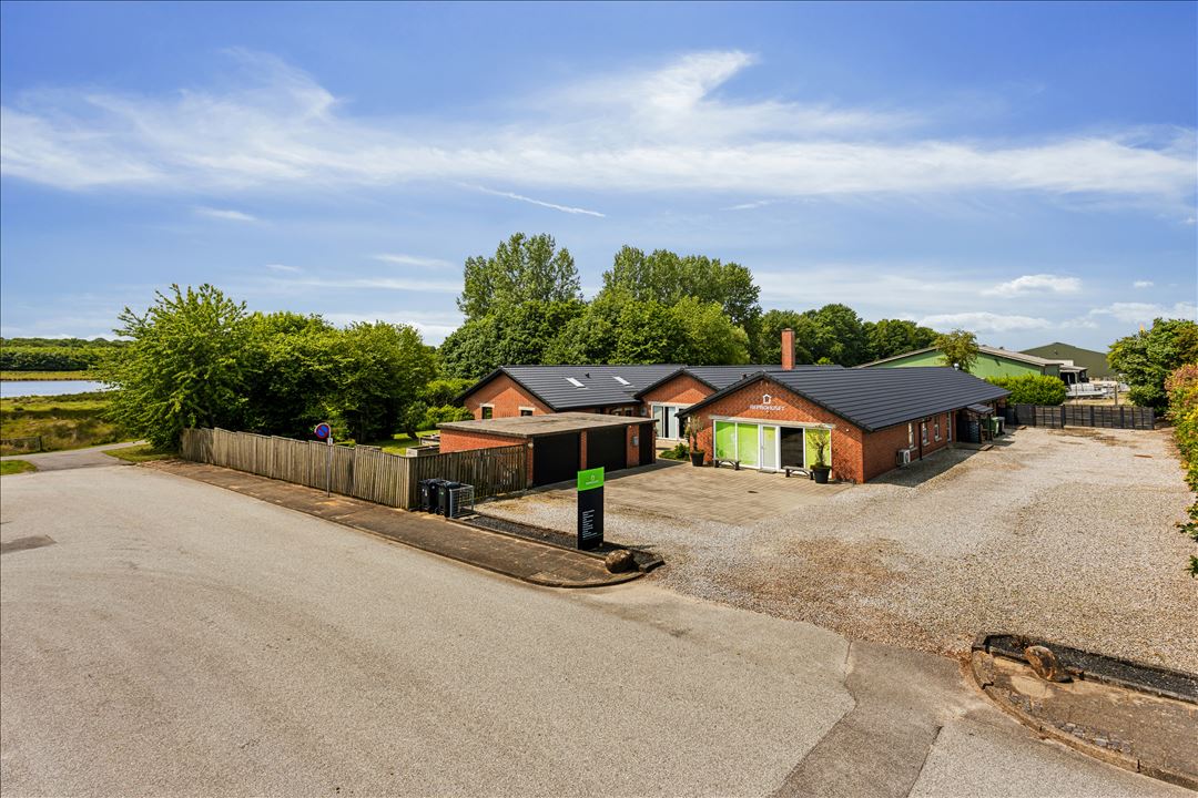 Denne nydelige og løbende moderniserede ejendom forener komfort, funktionalitet og beliggenhed på fornem vis. Boligdelen på 144 m² fremstår lys og indbydende, mens erhvervsdelen byder på hele 571 m² med mange anvendelsesmuligheder – oplagt til både lager, produktion, showroom eller værksted.Når man sidder i boligen eller haven mærker man slet ikke de omkringliggende virksomheder, men kan sidde ugeneret og nyde naturen.