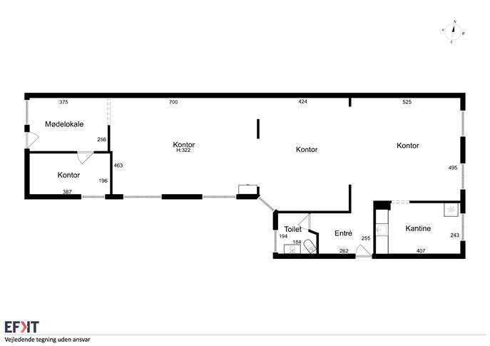 Derudover forefindes et mindre kontor samt et gennemgangslokale/mødelokale, samt toilet og nydeligt the-køkken. Det vil være muligt at flytte det nuværende the-køkken, så dette placeres bagerst i lejemålet ved "mødelokale", dog mod en kvadratmeterpris på 1.325 kr./m² (brutto).