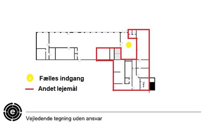 Lige uden for Silkeborg - i Erhvervscenter Silkeborg Syd - eksponeret ud til Hovedvejen mellem Horsens og Silkeborg, finder du lejemålet i en ejendom beliggende på stor grund med gode tilkørsels- og parkeringsforhold.Lejemålet indeholder fælles indgangsparti med rampe, som deles med naboen. Lejemålet har en åben og rummelig planløsning med gode lysindfald. I lejemålet er der 2 toiletter. Lejemålet er uden varmekilde, så det udlejes som koldlager.