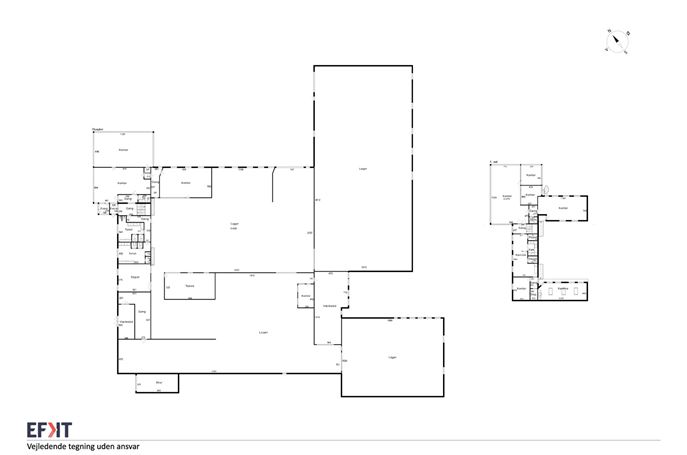 Der er i hallen i Bygning 1 en loftshøjde på 5,5 meter til spær og en port (4,0 m høj x 4,0 m bred). Her findes der også en traverskran.