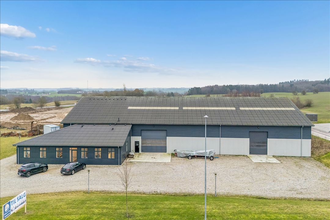 Selve ejendommen er på i alt 1.396 m², og tæller 171 m² kontor/ad­mi­ni­stra­tions­byg­ning som blev bygget til i 2020. Denne fremstår præsentabel med hvide vægge og lofter, samt høje fodpaneler mv. Her er der kontor, konferencerum, arkiv/printerrum, kantine/køkken og 2 mindre rum evt. til kontor, bad med to brusere samt 2 toiletter.