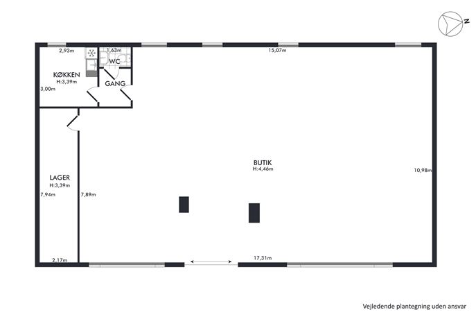 - FacadelængdeEjendommen har en facadelængde på 17,0 meter