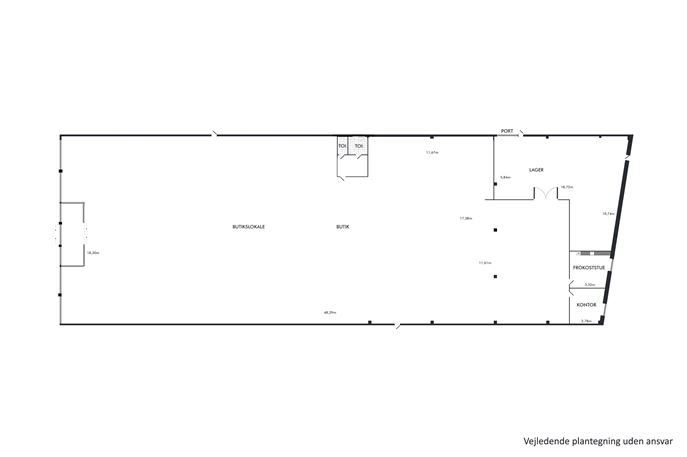 Ejendommen er indrettet med stort salgslokale store vinduespartier samt elektrisk skydedøre mod Østergade og kundeparkeringen. Loftshøjde på op til ca. 3,65 m i salgslokalet. Endvidere kontor samt personalerum med køkken i den bagerste del af butikken. Stort lager på ca. 125 m² med portadgang, som sikrer god vareindlevering.