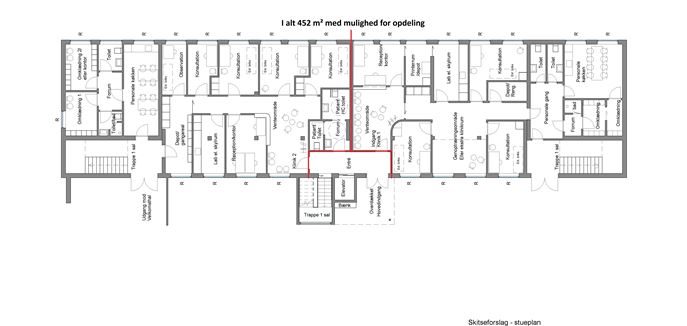 Lejemålene nyindrettes i tæt dialog mellem udlejer og lejer, så indretningen kan tilpasses den enkelte kliniks behov. Der er allerede udarbejdet indretningsforslag baseret på ejendommens faktiske forhold, som kan danne et godt udgangspunkt for planlægningen.