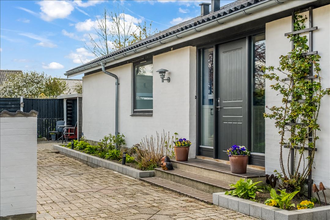 Huset byder på fire gode værelser, en stor og hyggelig stue med masser af lysindfald og adgang til en hyggelig terrasse og elegant have – perfekt til både hverdag og gæster året rundt. Det store køkken har fin bord- og skabsplads, og fra entré og gang er der nem adgang til både bryggers, badeværelse og gæstetoilet. Lofterne og de fleste gulve er nyligt skiftet, og boligen fremstår generelt i flot og løbende vedligeholdt stand – bl.a. er facaden vandskuret i 2023 og vinduer skiftet.