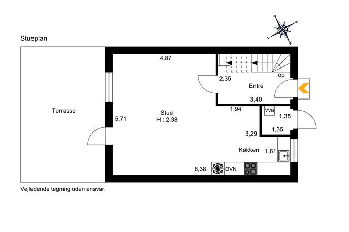 Boligen opvarmes med fjernvarme. Bemærk de lave anvendelsesudgifter!
