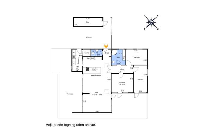 Den formelle beboelse lyder på 137 boligkvadratmeter (jf. BBR), men under taget finder I desuden en rummelig, højloftet carport og et integreret isoleret udhus, der tilsammen tæller 45 m2 (jf. BBR). Herfra træder I indenfor via bryggerset eller entrédøren, og den veldisponerede planløsning giver jer en bolig, som er støvsuget for spildplads.
