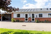 Huset er indrettet med en fin entre med indbyggede skabe, badeværelse med terrazzogulv og hvide elementer, samt 2 gode værelser, hvoraf det ene er med faste skabe. Lyst spisekøkken med velholdte, lyse elementer, et behageligt dagslys og adgang til praktisk bryggers med klinkegulv, skabsplads og plads til vaskemaskine og tørretumbler. Rummelig og lys opholdsstue, som i dag et indrettet til kombineret spise- og opholdsstue, her er lyst gulvtæppe, et godt lysindfald og udgang til vestvendt terrasse.