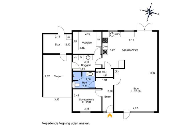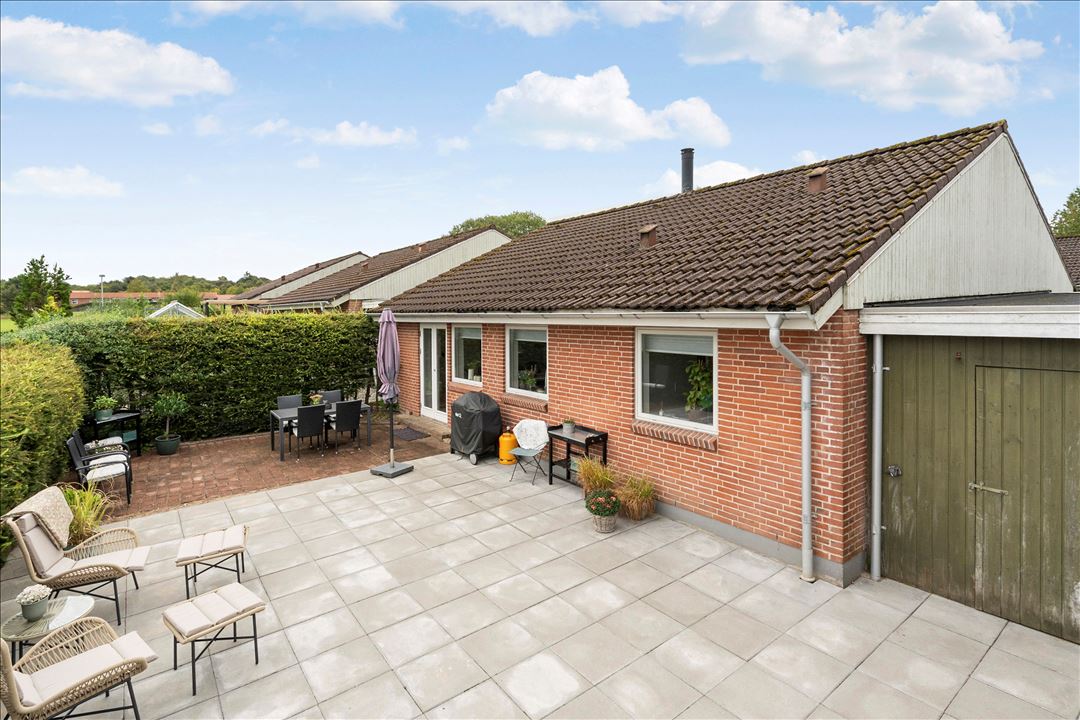Meget flot og indflytningsklar bolig med stort køkken-alrum og stue ud i eet med nyt gulv og nye lofter. Monteret med brændeovn som både giver hygge til rummet men også en behagelig varme. Morsø ovn fra 2010. Fra alrum er der udgang til flot anlagt baghave hvor man er helt ugenert og meget nem kan indrette en hyggelig gårdhave. Fra stuen er der ligeledes udgang til vestvendt terrasse, hvor aftensolen kan nydes. Lækkert køkken som er nyt og yderst rummeligt, og med indgang til det helt uundværlige spisekammer. Forgang med nyt gulv og nyt loft. Indgang til dels soveværelset i hyggelig badehotelsstil, og dels indgang til meget flot og nyt badeværelse med klinkegulv med varme, brusehjørne med glasdør og flot skabsarrangement fra Ikea. Endvidere lyst værelse med træloft og nyt gulv. Lækkert lyst bryggers med klinkegulv med direkte indgang fra carport - opgang til loftet via trappe, skabsarrangement med bord med vask. Fjernvarmeindgang samt vandmåler er placeret i bryggers. Plads til vaskemaskine.
