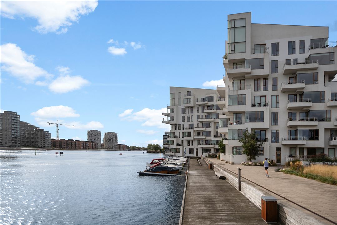Drømmer du om at bo i en moderne og stilfuld lejlighed med udsigt til vandet, tæt på byens puls og omgivet af eksklusiv arkitektur? Så er denne unikke bolig på Havneholmen 86, 5. th., 1561 København V noget for dig.Lejligheden er en del af det eftertragtede Havneholmen-kvarter, hvor moderne byggeri møder havnefrontens charme. Med sine 125 m² byder boligen på en rummelig og lys atmosfære, hvor store vinduespartier sikrer et fantastisk lysindfald og en betagende udsigt over vandet. Den veldisponerede planløsning inkluderer et åbent og stilrent køkken-alrum, perfekt til både hverdagsliv og gæstfri middage, en stor og lys stue, hvor du kan nyde udsigten over hele havneløbet, samt to gode værelser, der let kan indrettes som soveværelse, børneværelse eller kontor. Dertil kommer et lækkert badeværelse med eksklusive materialer og god plads, hertil er der gæstetoilet. Ydermere rummer lejligheden over to skønne altaner, hvor du kan slappe af med en kop kaffe eller et glas vin i aftensolen. Til lejligheden medfølger også et godt privat kælderrum med plads til opbevaring af diverse. Der er også mulighed for leje af bådplads lige uden for døren. Årlig udgift til bådplads pt. kr. 4.000, depositum kr. 11.000. Der er pt. venteliste, men få år.