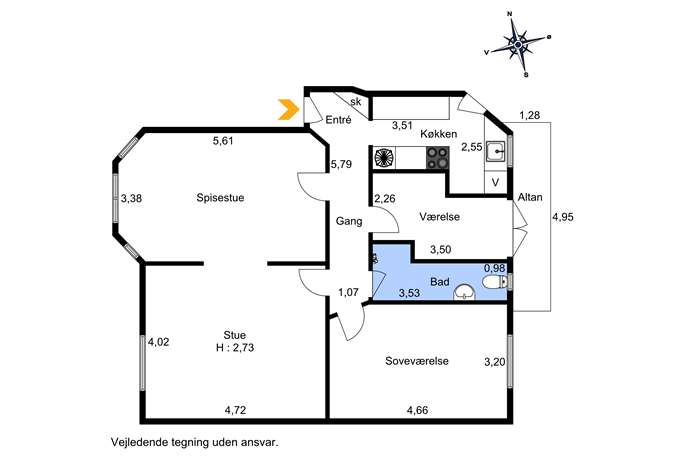 Fra entréen fordeler lejligheden sig optimalt: To stuer en suite med store vinduespartier som giver et åbent og indbydende opholdsrum – perfekt til både hverdag og gæster. Her får du plads til både spisestue og opholdsstue i en fin sammenhæng. Lejligheden byder på to gode værelser, hvoraf det ene har adgang til den store altan mod gården – et oplagt sted at nyde morgensolen eller en stille kop kaffe i grønne omgivelser. Altanen måler 1,3 meter i dybden og 4,9 meter i bredden. Altanen vil vende ud mod ejerforeningens gård. Her er flere grønne indslag, mens ejendommen hele vejen rundt skaber et lukket miljø, hvor byens lyde er skærmet godt af.
