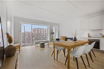 Velkommen til C.F. Møllers Allé 96, 5.tv – en lys og indbydende 3-værelses lejlighed på hele 90 m², som nu står helt klar til nye ejere. Her kan du flytte direkte ind og nyde efteråret fra første dag! Boligen fremstår nymalet fra gulv til loft, og de flotte trægulve er nybehandlede, så alt emmer af friskhed og en ny begyndelse.Planløsningen er både praktisk og rummelig. Den store entré giver en varm velkomst med god plads til overtøj og sko, mens det åbne køkken-alrum inviterer til hyggelige middage og samvær på de mørkere efterårsaftener. Det stilrene køkken giver plads til både hverdagsmad og gæstemiddage, og når vejret viser sig fra sin smukkeste side, kan du nyde efterårssolen på den sydvendte altan med udsigt til de rolige omgivelser.