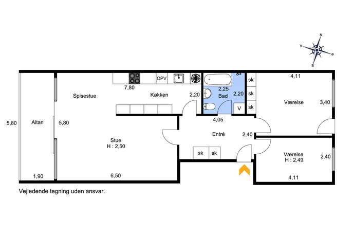 · Stor entré med skabsplads og funktionelt badeværelse med både badekar og bruseniche