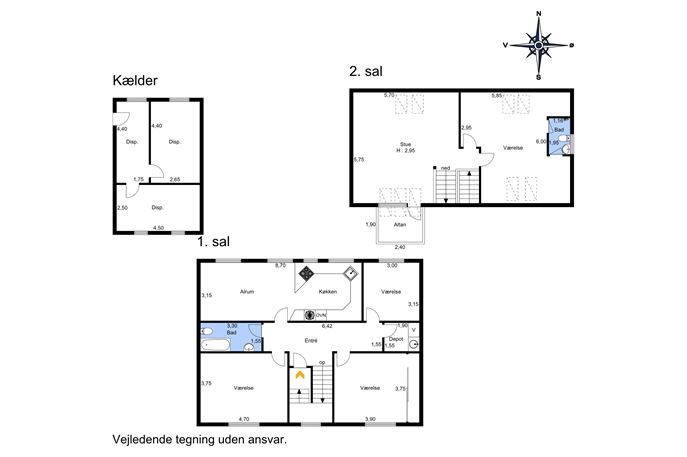 183 kvadratmeter bolig i BBR, men i virkeligheden noget større, for der går mange kvadratmeter fra i BBR-regnskabet med skrå lofter på 2. salen og de 60 kvadratmeter tør kælder med vinkælder og depotrum tæller ikke, men alt sammen er godt at ha’, når der skal være plads til alt fra ekstra fryser, skiudstyr, racercykel og slyngelstue.