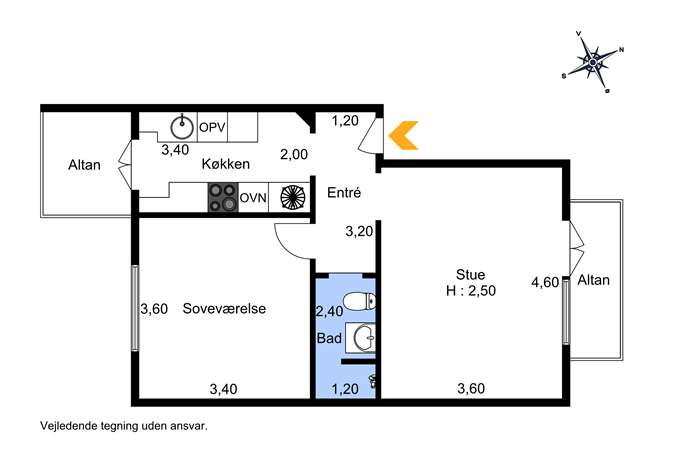 Soveværelset er rummeligt og lyst, med plads til både seng og garderobe, mens stuen fremstår hyggelig og in­dret­nings­ven­lig med plads til spisebord og so­faar­ran­ge­ment. Fra stuen er der udgang til boligens anden altan, som vender mod nordøst – perfekt til at starte dagen med morgensol.