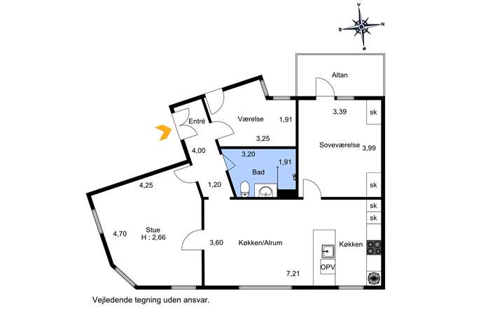 Det store køkken/alrum er et naturligt samlingspunkt med høje træpaneler, flot renoveret med et køkken i stilrent, lyst design med god skabs- og bordplads, kvalitets-hvidevarer og Quooker. Opholdsstuen imponerer med sin rummelighed og det smukke lysindfald fra store vinduespartier, mens soveværelset rummer et flot indbygget skabsparti. Fra soveværelset er der direkte udgang til en solvendt altan med plads til gæster – perfekt til de varme sommeraftener og på altanen starter sommeren allerede i april.