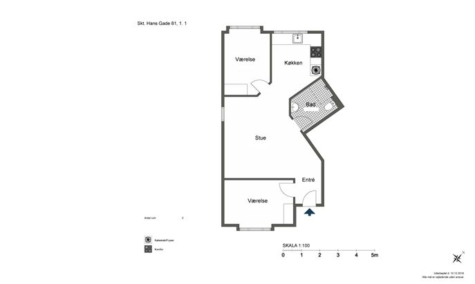 Når du træder ind, bliver du mødt af den åbne entré med plads til at stille et skab til jakker og fodtøj. Den store stue er hjertet i lejligheden og den inviterer til afslapning og socialt samvær. De store vinduer fra køkken og værelser lader dagslyset strømme ind og skaber en lys og indbydende atmosfære. Stuens åbne koncept skaber en naturlig forbindelse til køkkenet, der er udstyret med moderne faciliteter og tilstrækkelig plads til kulinariske udfoldelser. Soveværelset er rummeligt og designet med fokus på komfort. Her kan du trække dig tilbage og nyde roen i dine private omgivelser. Det mindre værelse, som nemt kan fungere som et hjemmekontor eller et ekstra værelse, tilbyder alsidighed og ekstra plads - alt efter behov. Badeværelset er rummeligt og stilrent med en separat bruseniche. Der er god plads og mulighed for at udnytte pladsen til mere opbevaring.
