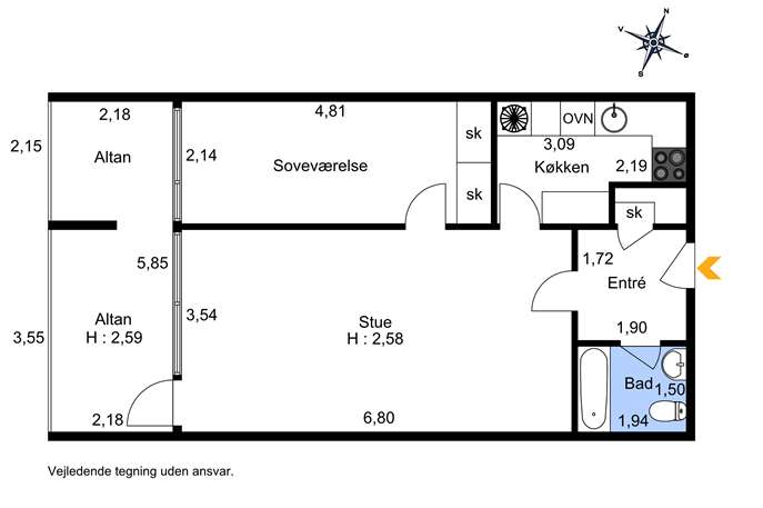 Som en enkel huskeregel, kan du have en gældsfaktor på fire gange din årlige indkomst og maksimalt låne op til 80% af boligens pris som realkreditlån samt 15% som banklån. Din egenbetaling skal mindst være 5% af boligens pris.