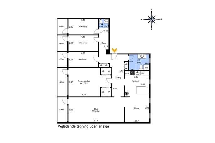 Velkommen indenfor: Stor lys og rummelig entré med god op­be­va­rings­plads. Herfra er der adgang til et nyere lyst badeværelse med muret bruseniche, vindue, væghængt toilet samt vaskesøjle med vaskemaskine og tørretumbler. Lækkert køkken/alrum med alt i hårde hvidevarer og masser af plads til stort spisebord. Stuen er stor og indbydende med udgang til en vestvendt altan med fin udsigt. Stort soveværelse med walk-through garderobe og udgang til altan. Separat værelsesgang med 3 værelser, der alle har adgang til altaner, hvilket giver et skønt lysindfald og mulighed for at nyde solen det meste af dagen. For enden af værelsesgangen findes et separat gæstetoilet med brus.