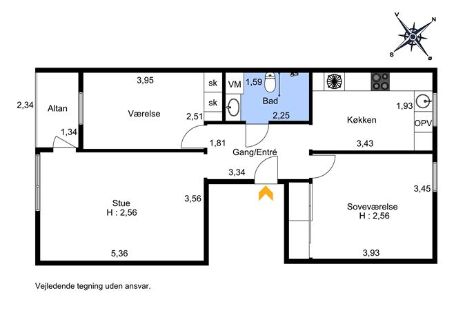 Lejligheden er indrettet med en rummelig og indbydende entré, hvor der er god plads til garderobe og opbevaring. Fra entréen åbner boligen sig op med let adgang til alle rum, hvilket giver et lyst og indbydende flow gennem hele lejligheden. Hjertet i boligen er den store stue, hvor de brede vinduespartier giver et dejligt lysindfald. Her er plads til både spisebord og sofahjørne, og fra stuen er der direkte udgang til en skøn altan. Altanen vender mod rolige omgivelser og er ideel til at nyde en kop kaffe eller et glas vin på de lune sommeraftener.