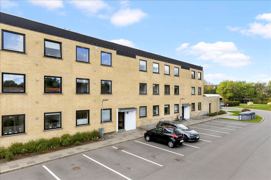 Alt i alt får du her en indflytningsklar lejlighed med en veldisponeret planløsning, en hyggelig altan, et stort indbygget skab, kælderrum og en beliggenhed, der kombinerer både ro, byliv og et stærkt lokalt fællesskab.