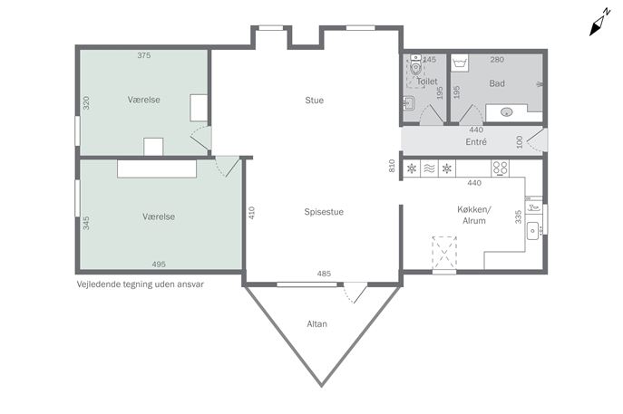 Som en enkel huskeregel, kan du have en gældsfaktor på fire gange din årlige indkomst og maksimalt låne op til 80% af boligens pris som realkreditlån samt 15% som banklån. Din egenbetaling skal mindst være 5% af boligens pris.