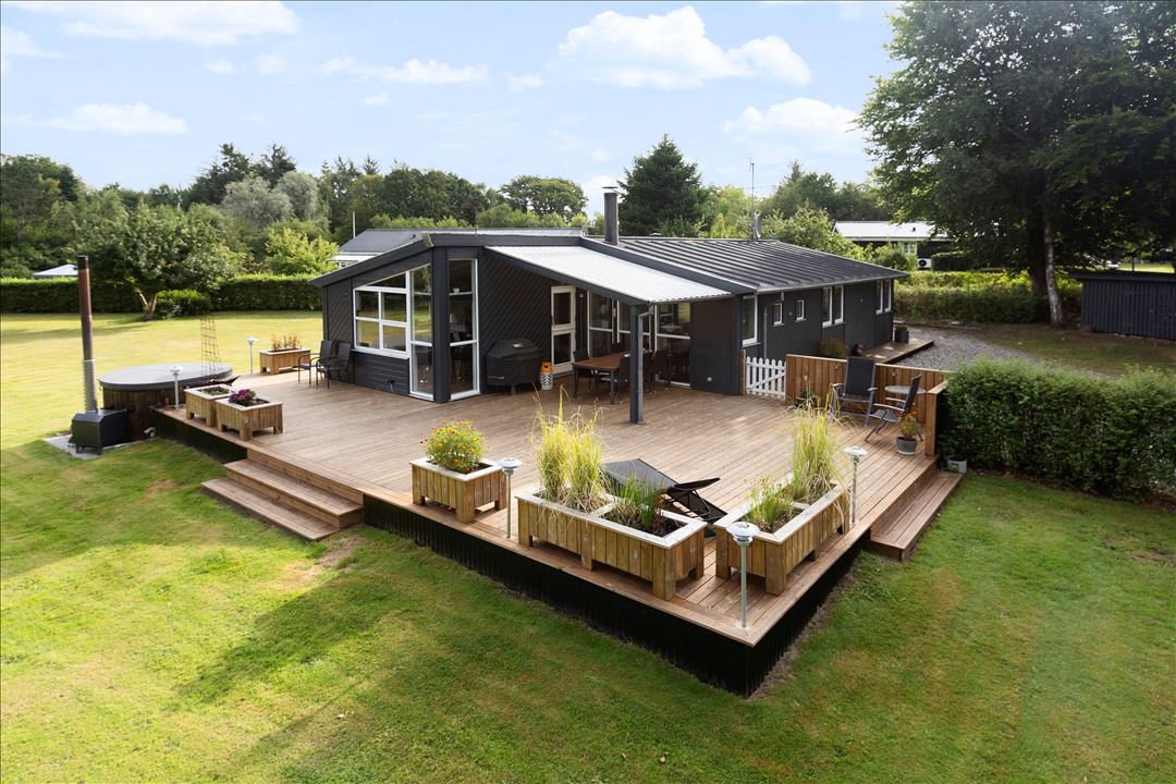 Den 4.300 m² store grund er en privat naturperle, omkranset af træer i den helt rigtige højde – så solen stadig finder vej, men du kan være helt for dig selv. På grunden ligger en smuk lille sø, som tilfører en særlig ro til omgivelserne. Haven er nem at passe, og de store træterrasser giver optimale rammer for hygge, måltider under åben himmel og den perfekte feriestemning.