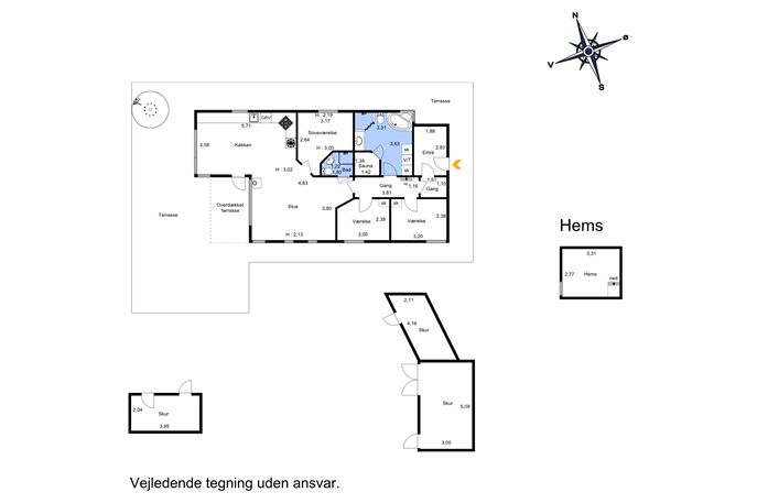 Sommerhuset fra 1998 rummer 100 m² bolig med en charmerende og lys atmosfære. Indretningen byder på tre gode værelser, stort badeværelse, ekstra gæstetoilet, hems til ekstra sovepladser samt et køkken-alrum i åben forbindelse med stuen. Fra stuen er der direkte udgang til den store træterrasse, hvor udelivet flyder naturligt sammen med boligen.