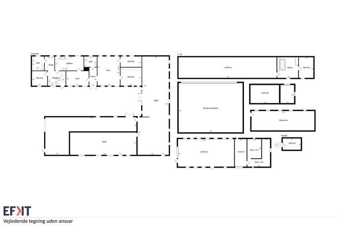 Haven er en oplevelse i sig selv - fordelt på to niveauer med frugttræer, små hyggelige kroge og en pavillon, hvor sommerdage og familietid får perfekte rammer. Til ejendommen hører flere solide udbygninger, herunder maskinværksted, lade og stalde, som giver rig mulighed for dyrehold, hobbyprojekter, eller måske en gårdbutik, bed and breakfast eller gildesal. Udbygningerne er i god stand og isoleret med Leca-blokke. På den anden side af vejen får I et ekstra jordstykke med maskinhal og mulighed for folde.