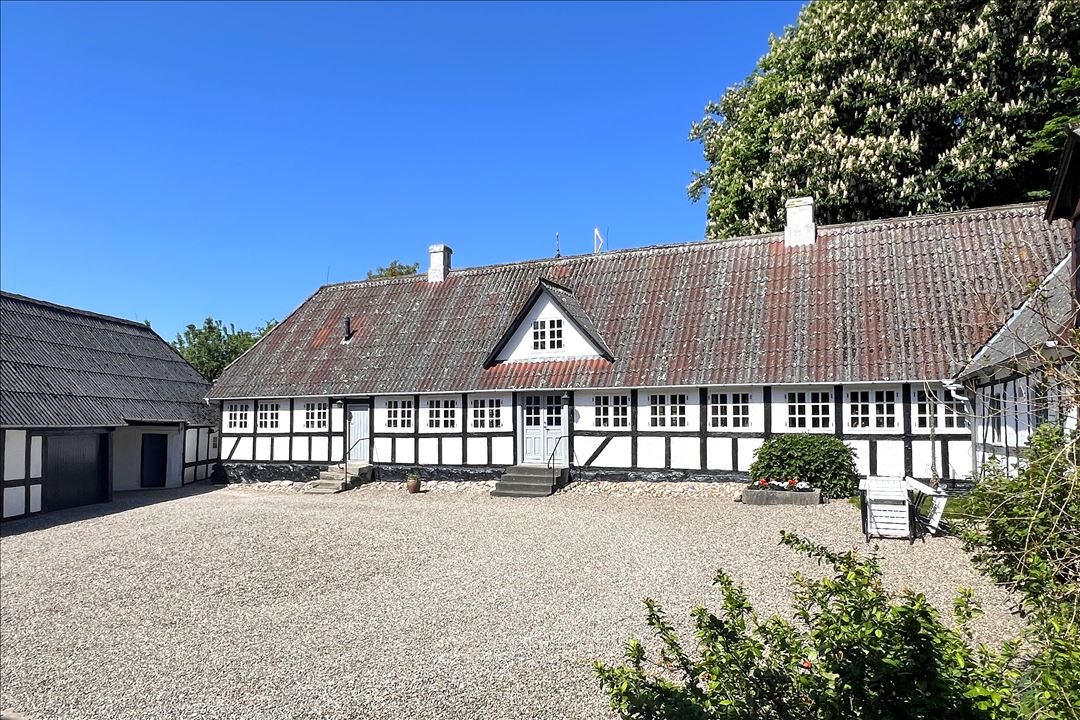 Ejendommen oser af sjæl og historie og står flot med klassisk bindingsværk, hvide tavl og sprossede vinduer. Den stemningsfulde gårdsplads med pigsten byder jer velkommen til et hjem, hvor historien går helt tilbage til 1600-tallet, men hvor moderne bekvemmeligheder er tænkt ind. I 1980 gennemgik huset en større renovering med bl.a. efterisolering rum for rum samt opdatering af lofter og interiør. Resultatet er en bolig, der både er charmerende og komfortabel.