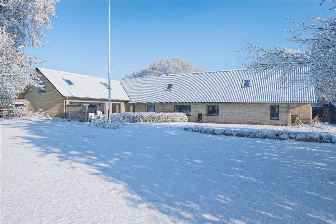 Det store, rummelige stuehus er oprindeligt fra 1875 med en tilbygning fra 1974. Stuehuset er løbende moderniseret med gode detaljer, bl.a. indemure i molersten og eternittag fra ca. 2006. Man kan med lethed lave en særskilt lejlighed i den ene ende af boligen, med egen indgang, køkken, bad og opgang til 1. sal.