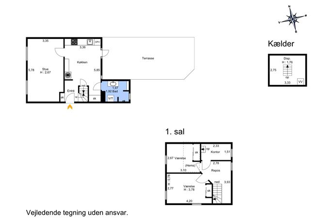 Kælder med opbevaringsplads og fjernvarmeunit. Isoleret udhus (”gæsteanneks” eller teenageafdeling). Overdækning/skur til cykler mv.